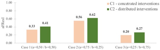 Parameters a, b and c are the weights associated with each sub-index. In the present study, the weighting process assumes equal values for all of them, since it is not the aim of this study to state the relative importance of each term in the resilience composition. In fact, defining this relative importance is something that may vary from case to case, and which should be a prerogative of decision makers.