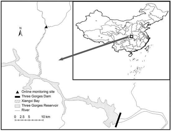 The sampling site is located in the middle region of Xiangxi Bay in the Three Gorges Reservoir (TGR) in China (Figure 1). The TGR is the largest man-made reservoir in China, with flood control as its most important task. During the flood season, a lower water level must be maintained to prevent flooding. However, the inflow discharge is always very high during this period, which leads to dramatic water level fluctuations (WLF). The Xiangxi River is the largest tributary of the TGR near the dam. Since the impoundment of the TGR in June 2003, the lower reaches of the river have evolved as Xiangxi Bay. As water velocity decreases and the water retention time increases, the risk of eutrophication increases. Consequently, algal blooms have occurred more frequently and vigorously, especially in the middle region of the bay [27,28]. This region belongs to the lacustrine zone according to the zonation theory of Straskraba and Tundisi [29]. The stable nature of this zone has contributed greatly to the outbreak of algal blooms.