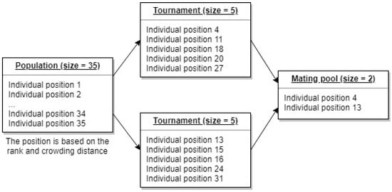 17]. In this way, the next generation will be better than the previous generation or equivalent if no individual from the descendants is better than the current population. This is called elitism selection. To select the best individual, we defined an operator