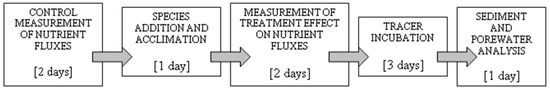 Two kinds of sediment incubations are being used to quantify species impact on the exchange of solutes. In situ studies are carried out on unmanipulated sediment, which has a natural level of transport rate variability [21,22,23,24,25]. This approach is used to characterize the complex benthic community’s role expressed as a ratio of measured total flux and estimated diffusion rate of a solute. Since manipulation of community structure is difficult in the field, assessment of the role of a particular species is limited. The second approach is based on laboratory measurements of solute exchange when a single species is introduced to partly or completely homogenized sediment [26,27,28,29,30]. Even with the manipulation of a particular species, the removal of other organisms prevents the retention of different pathways of solute transport. Therefore, the natural level of solute exchange is probably not reflected in these experiments, and treatment effects are more pronounced. Therefore, both of these approaches applied either in situ or in laboratory experiments are not suitable to quantify single species effect in a complex environment, a central issue when evaluating the role of species introductions.