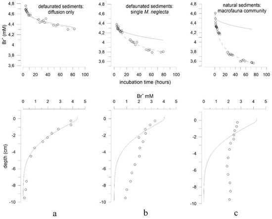 During the second incubation of defaunated cores, single specimens of M. neglecta were added (3 replicates). Species abundance in treated cores was equivalent to 130 ind m−2, which is in the range observed in stressed oligohaline habitats (e.g., Darss-Zingst: [49]; Curonian lagoon: [50]). After a 1-day acclimation, Br− was injected into the overlying water of experimental cores. Tracer sampling and handling of sediment were conducted as described above.