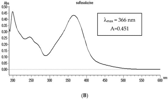 The absorption spectrum of budesonide (A) and sulfasalazine (B) solution in methanol (C = 5 × 10−5 mol L−1).
