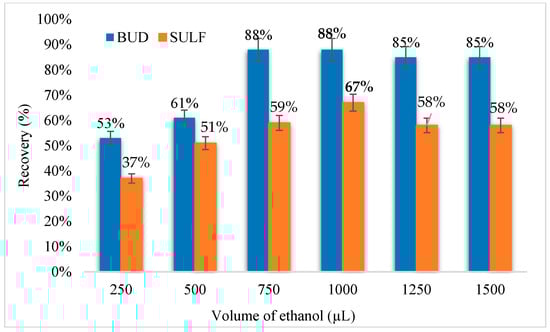 Recovery of analytes depending on the volume of ethanol (dispersing solvent).