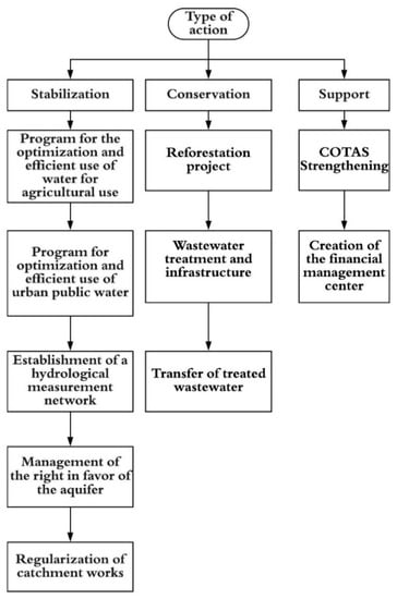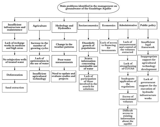 Several governmental entities have carried out studies to identify the main problems regarding the management of aquifer resources and the creation of action plans to stabilize its water levels. In 2007, the Autonomous University of Baja California, in collaboration with the National Water Commission, created an integrated groundwater management plan. Figure 1 and Figure 2 show the problems identified and their possible action plans. To this date there hasn’t been any other management plan for the aquifer [].