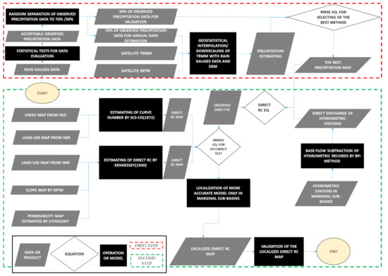 In this study, the precipitation and direct RC were estimated using the procedure within GIS (ESRI ArcGIS 10.3(Environmental Systems Research Institute, Inc, Redlands, CA, USA)), where each information layer was converted to raster format and then processed by the methodology described above.