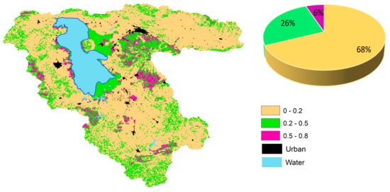 We used the Kennessey model in our study, which has also been applied in other studies [42,43,44,45]. According to this model, three major factors influence runoff: slope, land use, and soil permeability. Later, Tardi and Vittorini [46] added a climatic parameter, Ia, which represents the extent of wetness of the water year in this model: