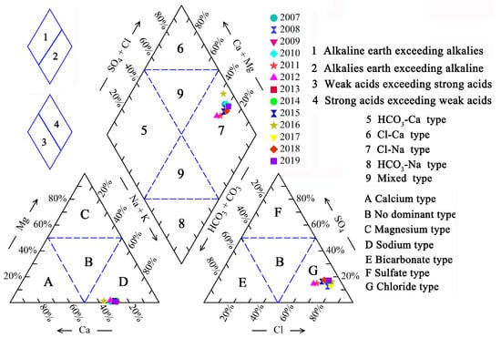APA StyleGao, Z., Liu, J., Li, F., Wang, M., Feng, J., & Wu, G. (2019). Hydrochemical Characteristics and Temporal Variations of Geothermal Water Quality in Tangtou, Shandong, China. Water, 11(8), 1643. https://doi.org/10.3390/w11081643