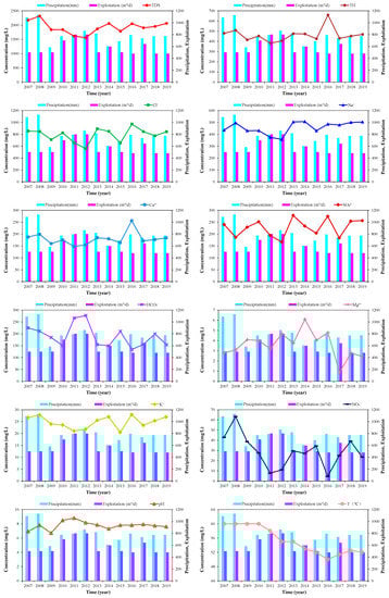 - Based on the grey relational analysis, the main physicochemical components of geothermal water are obviously correlated with the precipitation and the exploitation of geothermal water, and all the correlation coefficients are greater than 0.6. Overall, TDS, TH, Na+, Ca2+, Cl−, and K+ showed a trend of decreasing first and then increasing, while Mg2+ displayed a reverse trend with these components. The temperature of geothermal water changes with time in three stages: steady, decline, and increase. In addition, geothermal water temperature also was influenced by other geothermal wells exploiting hot water in the study area.