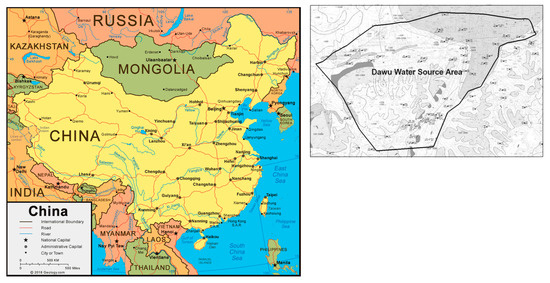The Dawu water source area is a rare super-large underground water source area in Northern China, and it is the main source of urban water supply to Zibo city, which has important strategic significance for a water resource guarantee and water supply security for Zibo city [1]. The specific scope of water source includes west of Zi river, east of Fengbei road, north of Liuzheng village and Xuwang village, and the closed area south of national highway 309. The total area of the water source is about 148 km2. Figure 1 shows the location of Dawu water source area.