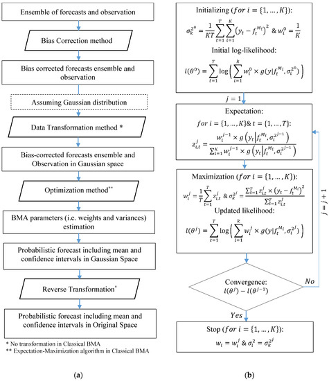 - Raftery, A.E.; Gneiting, T.; Balabdaoui, F.; Polakowski, M. Using bayesian model averaging to calibrate forecast ensembles. Mon. Weather Rev. 2005, 133, 1155–1174. [Google Scholar] [CrossRef]