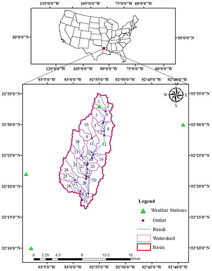 The SWAT has been widely used in different parts of the world for the identification and prioritization of CSAs [14,15,16,17,18,19,20]. It has also been used for predicting stream flow, nutrients, and sediment from watersheds [21,22,23,24]. We use MapShed as it is an open source MapWindow (http://www.mapshed.psu.edu/)-based model. The MapShed and its precursor the ArcView Generalized Watershed Loading Function (AVGWLF) model has been widely used to identify CSAs and to simulate stream flow, nitrogen, and phosphorus loading [9]. MapShed combines hydrology, land cover, soils, topography, weather, pollutant discharges, and other data to determine the amount of nutrient and sediment transport in a given watershed. We simulated the effects of alternative BMPs to reduce nutrient and sediment pollution within the Saline Bayou watershed in Louisiana, USA, which is dominated by poultry operations. Our objectives were to: