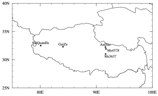 Map of the five observational sites within the TP (i.e., AnDuo, Ms3478, Ms3637, GaiZe and ShiQuanHe).