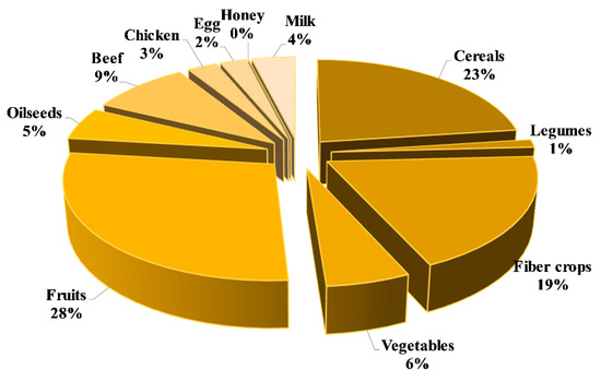 Contribution of each type of agricultural products in the water footprint of the province (total water footprint of the province is 2.34 Gm3⁄year).
