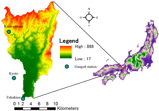 - Hu, M.; Sayama, T.; Duan, W.; Takara, K.; He, B.; Luo, P. Assessment of hydrological extremes in the Kamo River Basin, Japan. Hydrol. Sci. J. 2017, 62, 1255–1265. [Google Scholar] [CrossRef]
