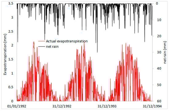 The actual evapotranspiration and net-rainfall for the Frome catchment during the drought period 1992–1994.