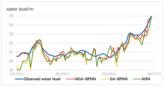 - Compared with the traditional ANN and GA-BPNN models, the IGA-BPNN can capture the non-linear rainfall; the water-level relationship of the studied area very well and performs better when predicting water level, regardless of frequent rain or the gentle change of water level. The IGA-BPNN model has a suitability for water-level predictions and would provide a better effect of short-term flood forecasting.