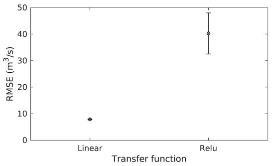 RMSE of a Maipo en el Manzano validation subset as a function of transfer function for the DL model.