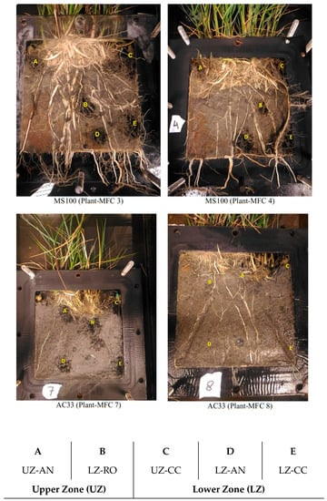 - Liu, B.; Ji, M.; Zhai, H. Anodic potentials, electricity generation and bacterial community as affected by plant roots in sediment microbial fuel cell: Effects of anode locations. Chemosphere 2018, 209, 739–747. [Google Scholar] [CrossRef]