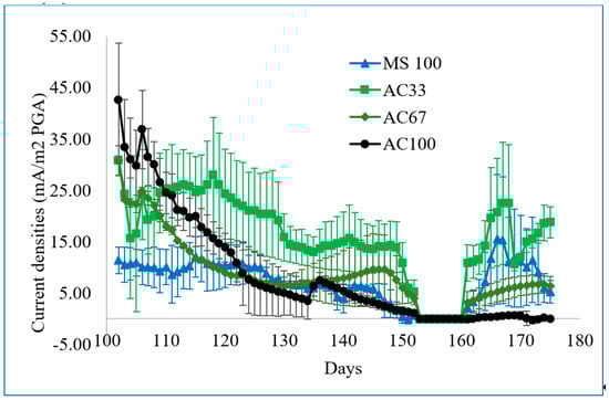 3.2. Mixture of Marine Sediment and Activated Carbon Generating Electricity in Plant-MFCs