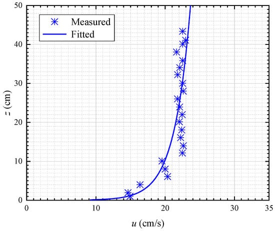 The random standard uncertainties for velocity measured at each point are presented in Appendix A. The maximum and minimum of are calculated as 2.43 × 10−3 at z = 1.03 cm and 6.60 × 10−4 at z = 40.06 cm separately. The accuracies of ADV distance and velocity measurements are ±0.1 mm and ±0.1 mm/s. As the smallest distance between the ADV probe and the sediments bed in velocity measurement was 1.06 cm with an averaged velocity of 14.93 cm/s, the maximum errors of distance and velocity are 0.94% and 0.1%. Thus, the systematic errors are neglected, and is thought to be equal to . The Nikurase roughness in Equation (4) obtained from Figure 2 is 0.06 cm, which is a little smaller than the medium sediment particle size , and indicates that the total error of is −7.7%. Since scouring depths at points KM and KC were measured by ADV, their errors are ±0.1 mm. The maximum systematic error from the smallest scouring depth in test 3 is ±10%, as shown in Table 2. It is considered that the sizes of sediment particles will have an effect on scouring depths measurements. When they are assumed to be spherical, it is identical to say that the measured values of scouring depths included an error of its diameter. At this point, the maximum systematic error of scouring depth is 65%. However, the equilibrium scouring depths of and in Table 2 were the maximum scouring depths measured in test 3, so as to present the most disadvantageous situation in local scouring.