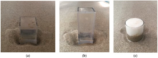 Photographs of scour holes after scouring. (a) Test 1; (b) Test 2; (c) Test 3.