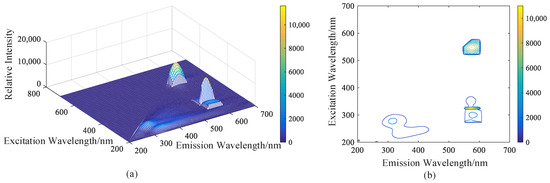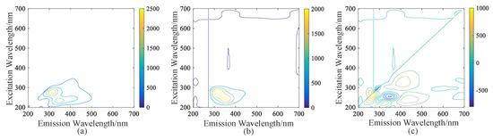 Assuming that the number of samples measured is , the number of excitation wavelengths is , and the number of emission wavelengths is , the 3D fluorescence spectral matrix (EEMs) obtained by this detection can be expressed as [21]: