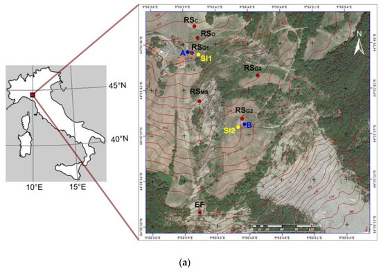 Landslides are complex systems dependent on geological, geomorphological, hydrogeological and geotechnical factors, and represent worldwide danger for people, buildings and transportation infrastructures. They are common in the Northern Apennines (Italy), a folded and thrusted belt developed since the Cretaceous period [1,2,3,4], where different types of landslides can be detected and large earth flows are widespread [5]. In several areas, earth or rock rotational and/or translational slides evolve into earth flows [6,7]. These landslides can be huge [8], and the affected areas can reach up to 105 m2 (with displaced volumes up to 108 m3).