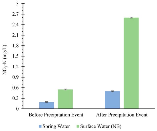 NO3-N sampled in a spring upstream of TGC and at NB before and after a precipitation event, on November 15th and 16th, 2017, respectively.