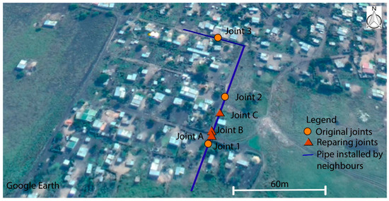 Location of joints in the pipe installed by the neighbors in Block Q11 (Map: Chitata, 2019).