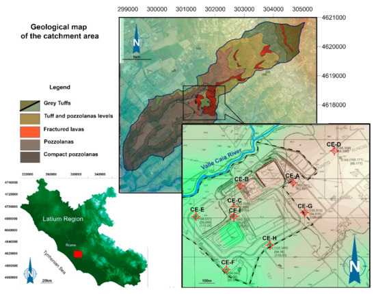 - Capelli, G.; Mazza, R.; Gazzetti, C. Strumenti e Strategie per la Tutela e uso Compatibile Della Risorsa Idrica nel Lazio. Gli Acquiferi Vulcanici; Pitagora: Bologna, Italy, 2005; ISBN 978-8837114503. [Google Scholar]