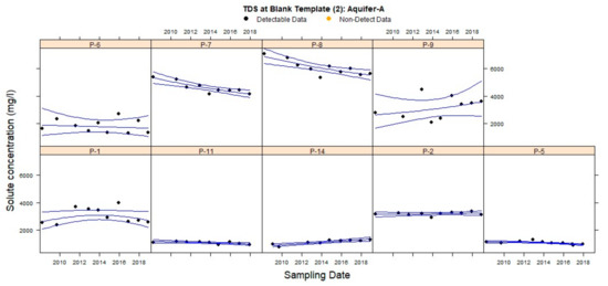 TDS trends in analyzed boreholes [ground water spatiotemporal data analysis tool (GWSDAT program).