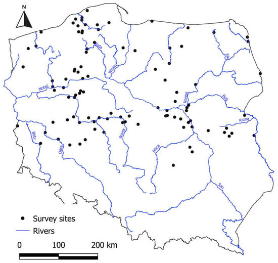 Distribution of the survey sites throughout the lowland part of Poland.