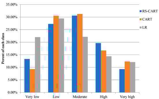 | Factors | Class | A (%) | Underestimation RSCART-CART B (%) | B-A (%) | Overestimation RSCART-CART B (%) | B-A (%) |