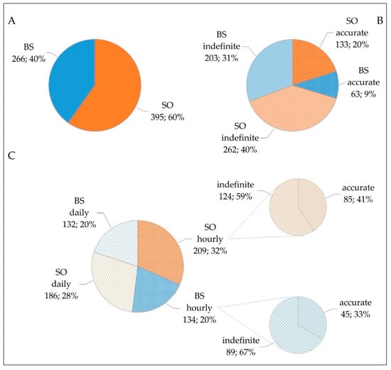 Statistical analysis of rainfall induced landslides in the Sondrio and Brescia Provinces in the 1927–2008 period. (A) spatial distribution of the processes in the two provinces: SO, Sondrio Province; BS, Brescia Province. (B) Classification of the processes based on the accuracy of the time of landslide occurrence (accurate time or indefinite period). (C) Classification of the processes based on the type of the rainfall measurements available (hourly or sub-hourly and daily) and further classification of the events for which hourly rainfall data are available based on the accuracy of the time of the landslide occurrence (accurate time or indefinite period).