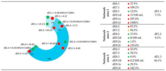The energy efficiency and effectiveness PIs are stage-specific, but they are all ultimately converted into a grade (good: “green”, fair: “yellow”, poor: “red”) by comparing the PI value obtained with the corresponding reference values for each performance level. This allows comparing UWS stages and defining priorities between them.
