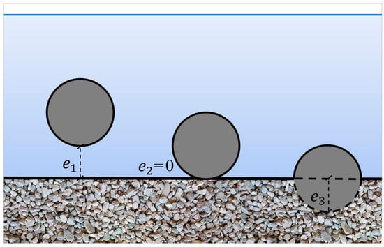 Schematic representation of the geometrical conditions of the experimental runs, where ei (i = 1, 2, 3) is the gap between the lower edge of the cylinder and the bed surface.