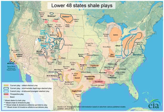 - US EIA. Maps: Oil and Gas Exploration, Resources, and Production. Available online: https://www.eia.gov/maps/maps.htm (accessed on 30 December 2019).
