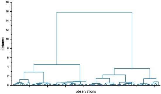 Figure 6 presents the dendrogram resulting from the grouping of the analyzed 80 precipitation shapes from the IMGW-PIB station in Jelenia Góra. The analysis of the chart made it possible to determine the cut-off distance of approximately 3, which led to the division of precipitation into four clusters with clearly different courses of intensity changes over time.