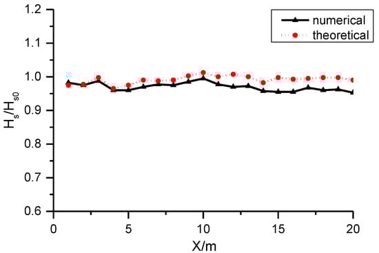 Table 3 shows the reflection coefficients of right boundary for the four cases, which were calculated by the method proposed by Goda and Suzuki [27]. The lengths of the damping zone in these cases were three times the corresponding wavelength. The reflection coefficients were under or about 10%, which indicates that the wave damping zone was effective, even for short wave and steep wave. The biggest value of reflection coefficient for case 3 took place due to its biggest wave steepness and nonlinearity. Another feasible method was to absorb the waves by a moving boundary at the end of the wave flume. The movement of the absorption boundary can be controlled by the equation proposed by Schäffer and Klopman [28]. Even though this method can reduce the computational cost (no need to extend the computational domain as damping zone), the absorption efficiency decreases obviously for short waves, as tested by Higuera et al. [12]. Besides, for three-dimensional cases, this method is impracticable due to the wave velocity component parallel to the moving absorption boundary. Since the three-dimensional waves are also included in this work, the damping zone method was adopted. Except for the short wave cases, the reflection coefficients listed in Table 3 were also slightly lower than the results by the moving absorption boundary method [12].