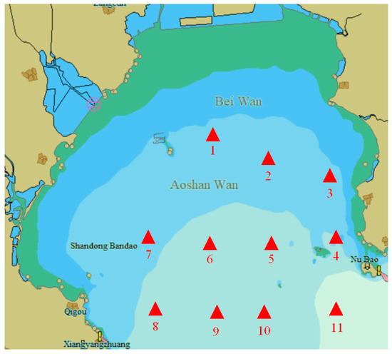 A schematic diagram of 11 sampling sites in Aoshan Bay.