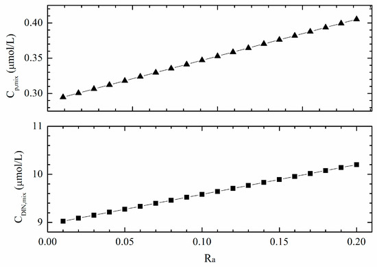 The relationship between P and DIN concentration and upwelling ratio (Ra).