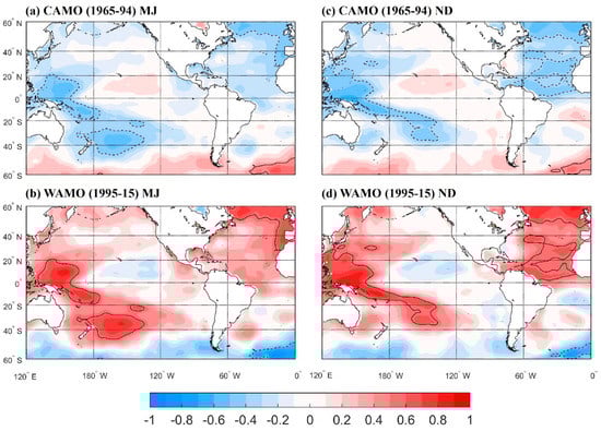 - Sung, M.K.; An, S.-I.; Kim, B.M.; Kug, J.S. Asymmetric impact of Atlantic Multidecadal Oscillation on El Niño and la Niña characteristics. Geophys. Res. Lett. 2015, 42, 4998–5004. [Google Scholar] [CrossRef]