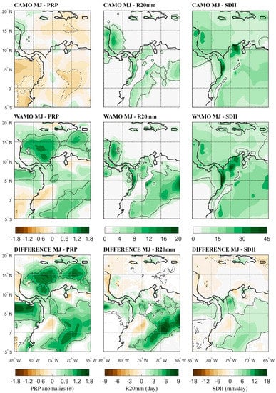 - Arias, P.A.; Martínez, J.A.; Vieira, S.C. Moisture sources to the 2010–2012 anomalous wet season in northern South America. Clim. Dyn. 2015, 45, 2861–2884. [Google Scholar] [CrossRef]