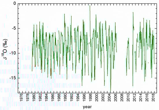 However, in recent years, we have become aware of climatic changes that have caused an increase in global temperature and changes in the precipitation pattern, as well as severe and extreme weather events (droughts, heavy storms, and temperature records). The recent increase in global temperature has exceeded the natural variabilities during the Holocene [28]. The planet’s average surface temperature has risen about 1 °C (between 0.8 °C and 1.2 °C [29]) since the late 19th century, a change driven largely by increased carbon dioxide and other human-made emissions into the atmosphere. Most of the warming has occurred in the past 35 years, with 16 of the 17 warmest years on record occurring since 2001. The 10 hottest years ever recorded have all occurred since 1998 [30]. The hottest years on record globally have been the last five (2014–2018), with 2016 being the hottest year [31], and eight months in 2016 (from January through September, except for June) were the warmest on record for those respective months. October, November, and December of 2016 were the second warmest of those months on record: in all three cases, behind records set in 2015. Correlations between the precipitation isotope ratios recorded in the GNIP and meteorological quantities may provide additional evidence of recent climate change that appears to have manifested globally as well as evidence of the local weather situation. To find such evidence, one should have sufficiently long records of both climate data and the isotopic composition of precipitation.