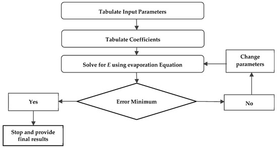 Evaporation rate estimation in irrigated areas and other water bodies is highly complex due to the nonlinear behavior of various physical processes that affect vaporization. Several equations exist for calculating the evaporation rates of various water bodies and evaporation pans [2,4,5,6,7,8], and each one of them provides different results. Therefore, selecting the most appropriate equation for estimating evaporation rates remains a vital research topic [9,10,11,12,13]. The availability and accuracy of data is another issue to be addressed. For arid regions, it is of utmost importance to compare and evaluate the methods of estimating evaporation, in order to select the best evaporation equation for the future planning of limiting water resources. Inaccuracies in estimated evaporation will directly affect the design, operation, and maintenance of drainage facilities, irrigation schedules, and runoff estimations. As equations based on physical principles require a lot of data and most of the empirical equations are site-dependent, the empirical parameters of these equations must be determined with an acceptable degree of certainty [11,12,13]. Identification of the parameters of the evaporation equations requires the application of a suitable optimization technique. This aspect has not been frequently investigated in past studies.