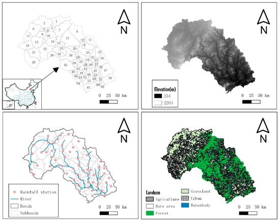 Location, sub-basins, land-use distribution, and elevation of the Luanhe watershed.