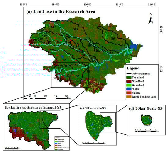21]. Finding the spatial scale at which human activities have the most significant effects on water quality is going to make it more likely that we can identify the priority regions in the river basin and then guide the more efficient water protection policies. Besides, when comparing previous researchers, their results implied that one specific land use type may have various levels of effects even inversed influence on water quality in dry and wet seasons [