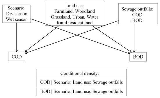 36]. In this way, both quantitative variables (such as water quality and land use data) and qualitative variables (different season scenarios) can be easily incorporated into one model. Moreover, the DAG can provide the visual interpretation of model structures in the complex system, which contributes to a more understandable model about influence factors on water quality in river systems [
