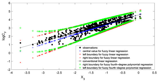 - The problem results in the following linear programming problem:where ci ≥ 0, for i = 0, 1, …, n.In addition, many times, when data are classic numbers, we can easily approximate non-linear cases with the fuzzy linear regression model with the help of auxiliary variables. In this case, the total uncertainty (cumulative width) indicates incomplete complexity, whereas non-physical behavior is an indicator of overtraining [77], due to adoption of excessive complexity in non-linear models.