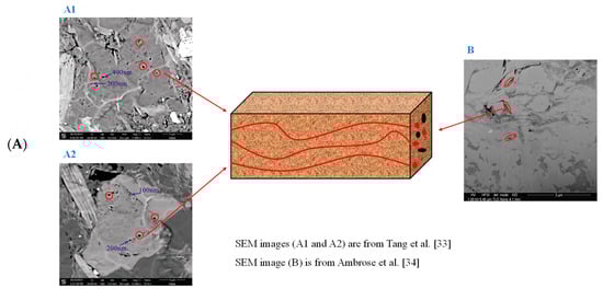 Conceptual model of pore shape distribution. SEM images (A1 and A2) are from Tang et al. [33]. SEM image (B) is from Ambrose et al. [34].
